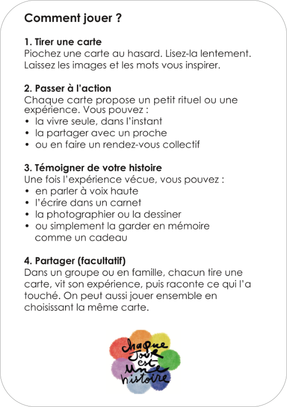 Chacune des 40 cartes du jeu vous invite à habiter le monde autrement, à mettre à l’honneur de fines traces de vie laissées dans l’ombre.